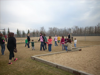Last night was Parent Links 'Festival of Leaves' - it was held at North Cooking Lake and it was so much fun! I'm so glad we went! They had a bouncy castle, bowling, play dough, bricks, fire pit with marshmallows to roast, a nature walk and scavenger hunt, swings, slides and climbing frame, horse drawn wagon rides, colouring, all kinds of games and fun like Musical statues.....a supper of chili and bun, bowls of chocolates to help yourself to, and a big cake served to everyone! It was $5 a family and was just fabulous...they even had the local library there discussing programs and ideas for Fall stories for children......