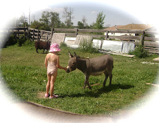 Laurie, Sam and Abby were really lucky and got to go and meet Vals animals this afternoon - she has two donkeys and two sheep. It's been ages since we've seen them - I'm not even sure if we've seen the donkeys - I know we've seen the sheep before though....my memory is hopeless!