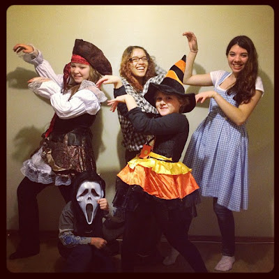 It was really fun to finally be able to give out candy and have kids come to the door :) Abby and Sam had chosen the candy we gave out...I dressed up to answer the door too :)