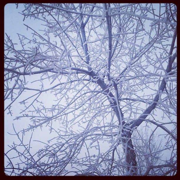 We ran some errands before heading to the library. It was a cold and frosty day. Very pretty with the hoar frost!